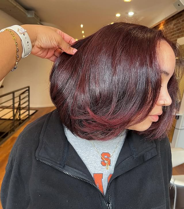 Balayage in auburn brown brings depth and softness to your hairstyle. The hand-painted highlights look seamless and natural, enhancing your hair’s shine. It’s a chic choice for anyone who loves effortless beauty.