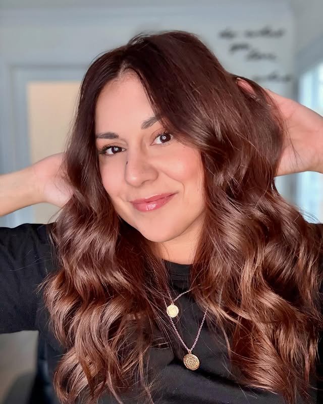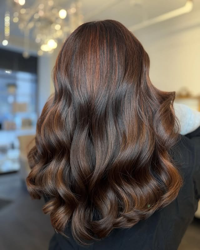 Waves enhance the natural shine of auburn brown hair beautifully. The movement brings out the warm undertones, making the look playful yet chic. Perfect for both casual and formal vibes.