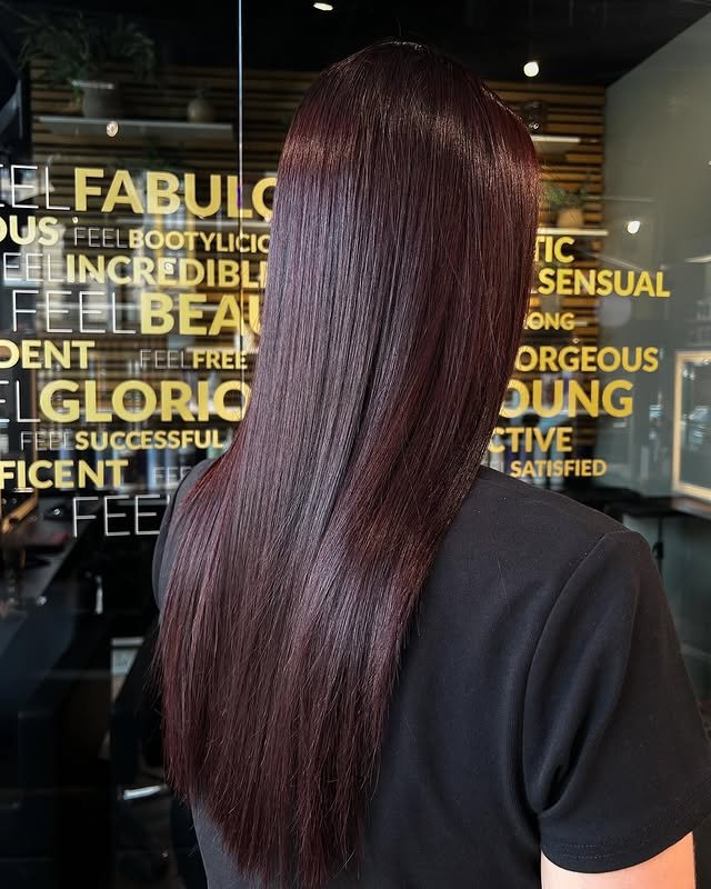 If you’re looking for a hair color that’s bold, glossy, and full of personality, cherry coke red hair is the perfect choice. This gorgeous shade blends deep brunette undertones with rich cherry-red hues, creating a look that’s both sultry and sophisticated. Its multidimensional finish shines beautifully under the light, making it a go-to option for anyone who wants a vibrant yet elegant style.
