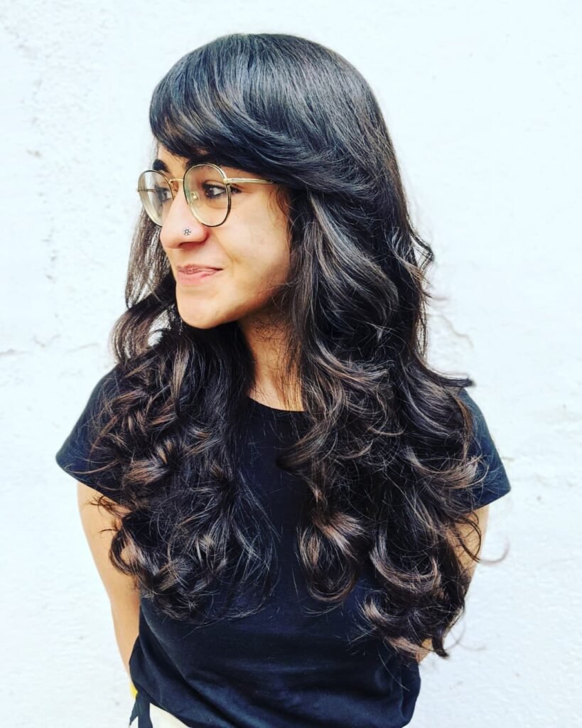 Get those relaxed, bohemian vibes with side swept bangs and airy layers. This style adds movement and flow while keeping things natural and laid-back — perfect for free-spirited energy.