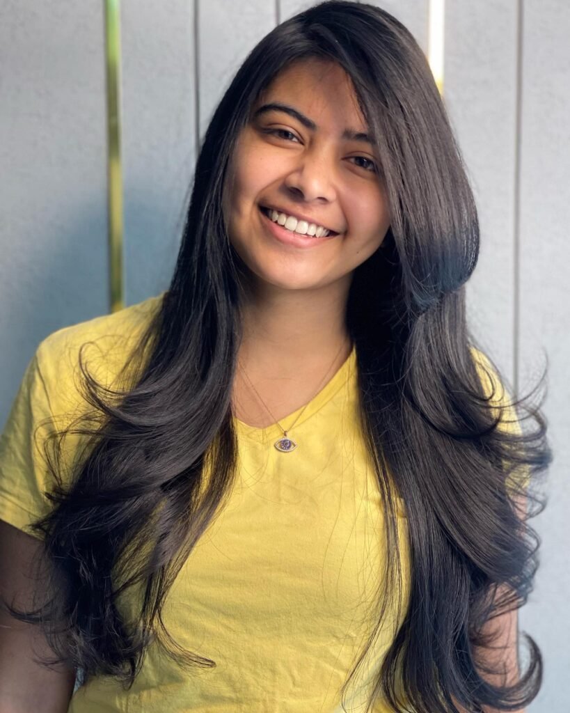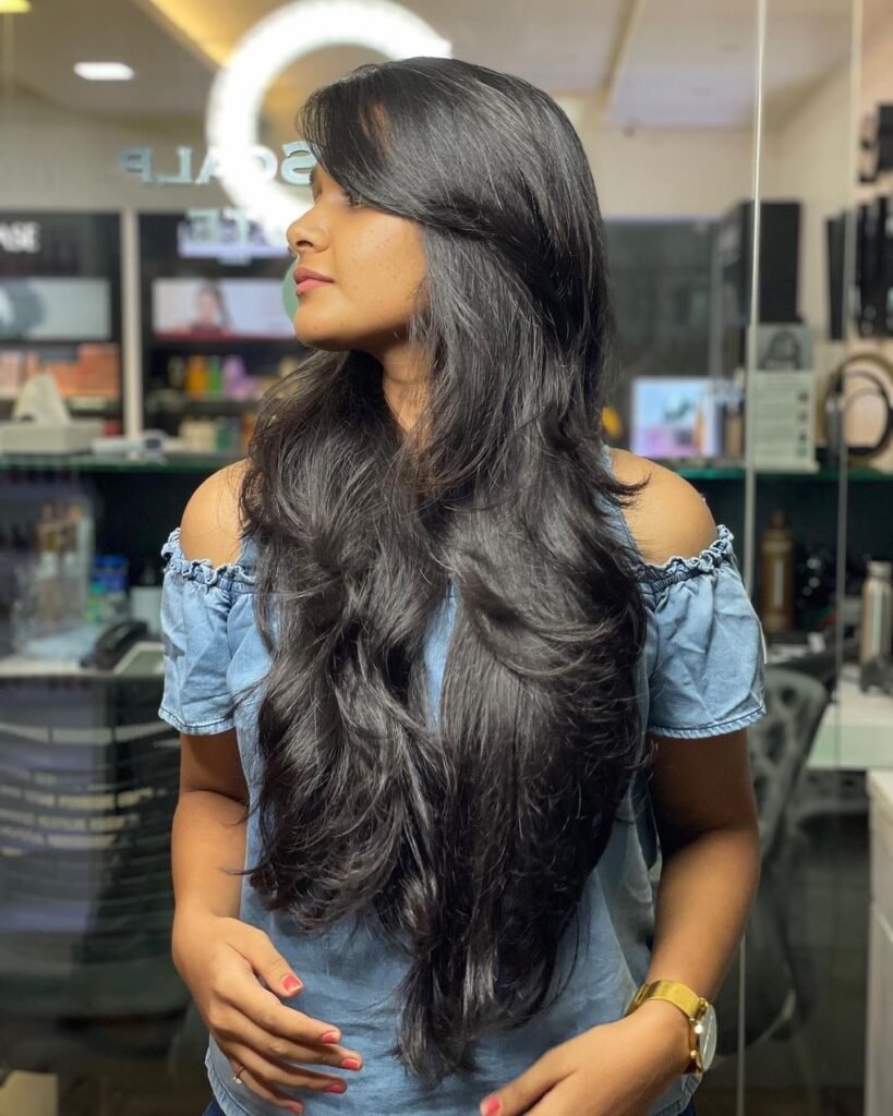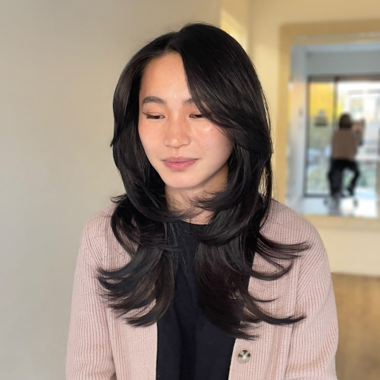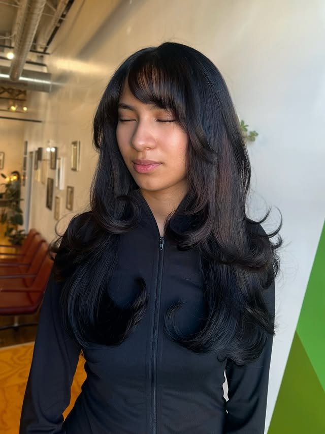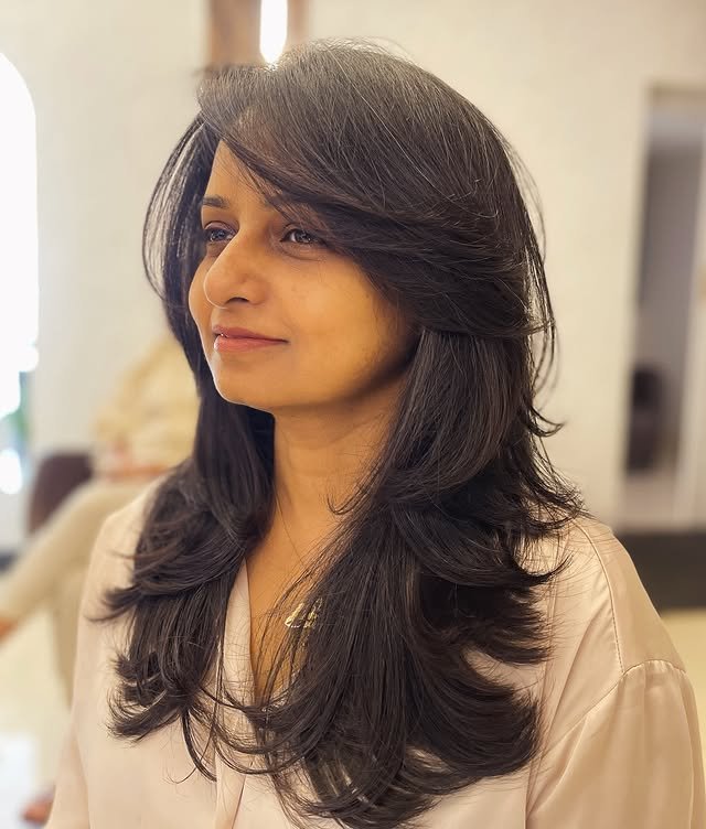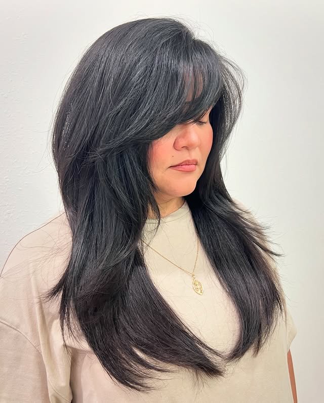 Some hairstyles never fade — and this is one of them. Long, layered hair with side swept bangs creates an elegant, face-framing look that feels modern yet timeless.