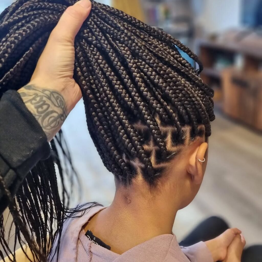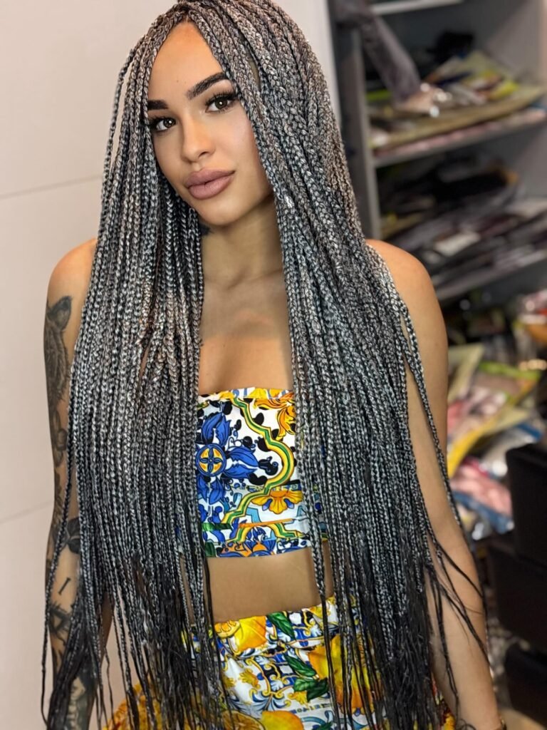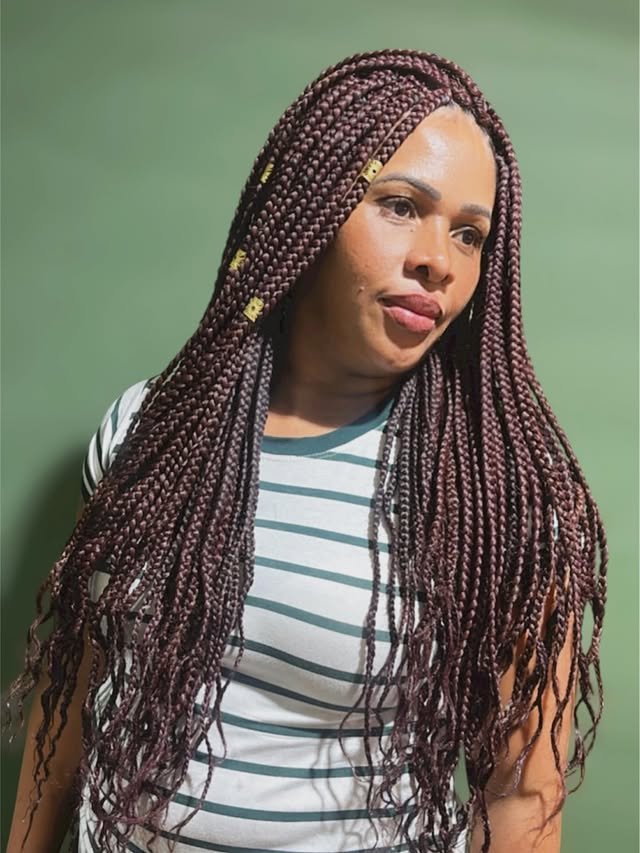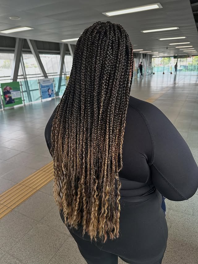 Small box braids offer a polished and refined style that looks neat and sophisticated. They last longer and give you more styling options. This style is ideal for those who love detailed and versatile braids.