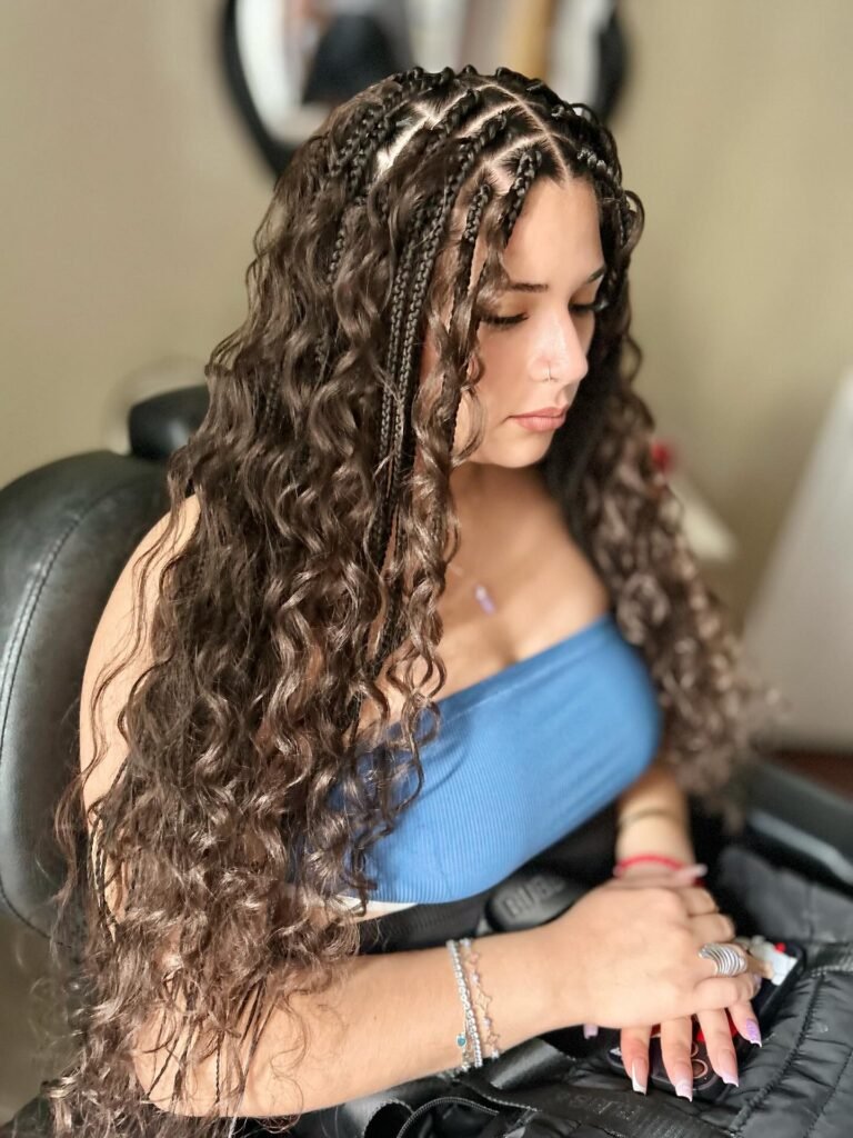 Adding curls at the ends of your braids gives them a feminine and romantic vibe. It adds texture and movement while keeping the braids fresh. This style is playful yet elegant.