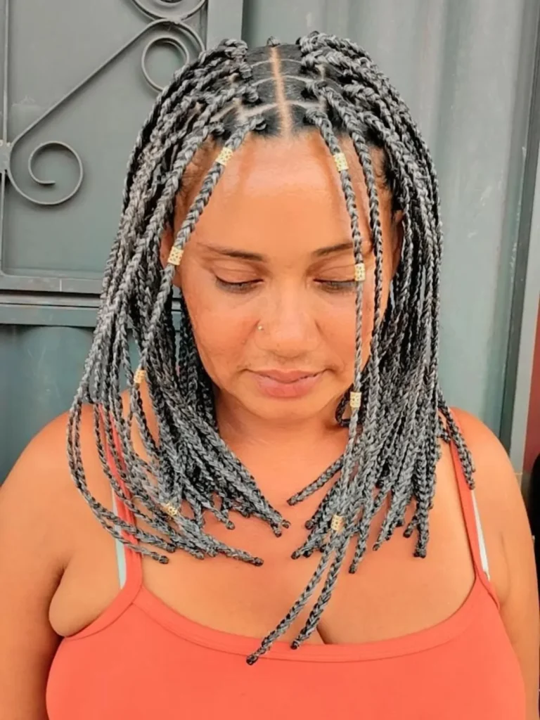 Bob-length box braids are trendy, lightweight, and easy to manage. They frame the face beautifully and give you a fresh, youthful appearance. Perfect for those who love chic, shorter hairstyles.