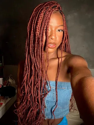 Jumbo box braids are big, beautiful, and bold. They’re perfect if you want a dramatic look that stands out. Plus, they’re quicker to install and give you a fierce, confident vibe.