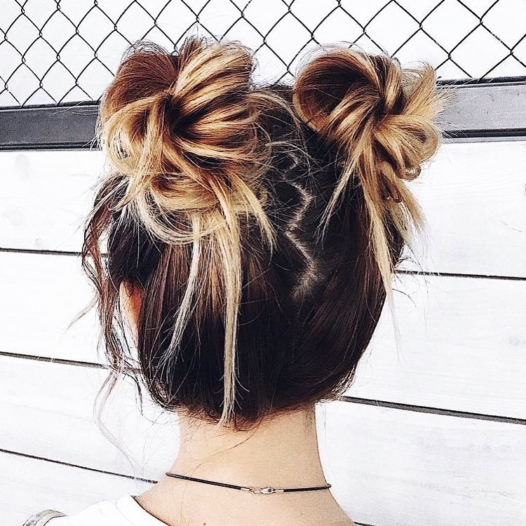 Got long hair? Double buns are a dream come true. They keep your hair off your face while showing off volume and thickness. A practical yet gorgeous style for any occasion.