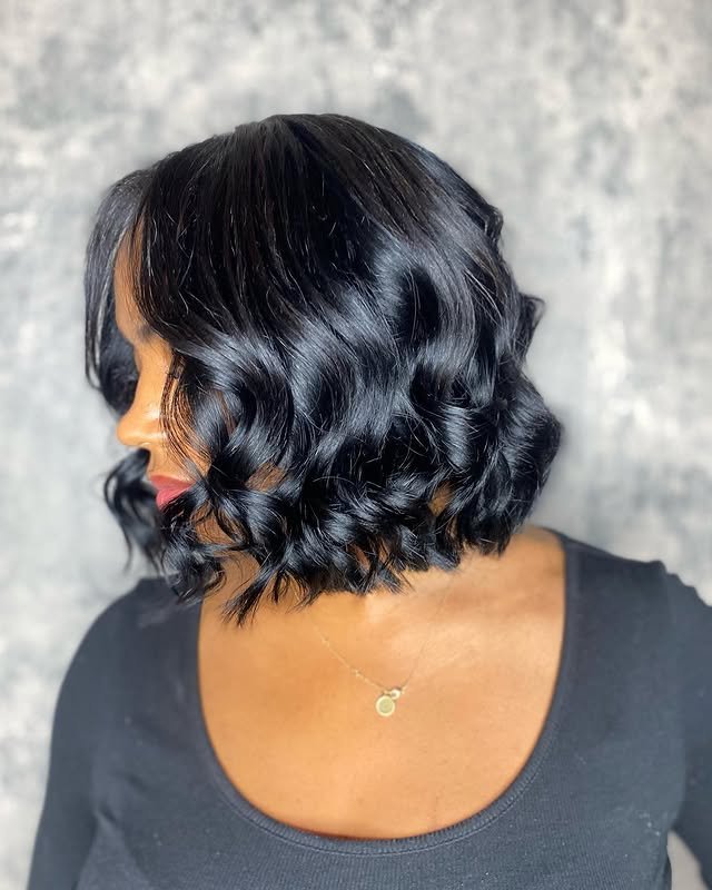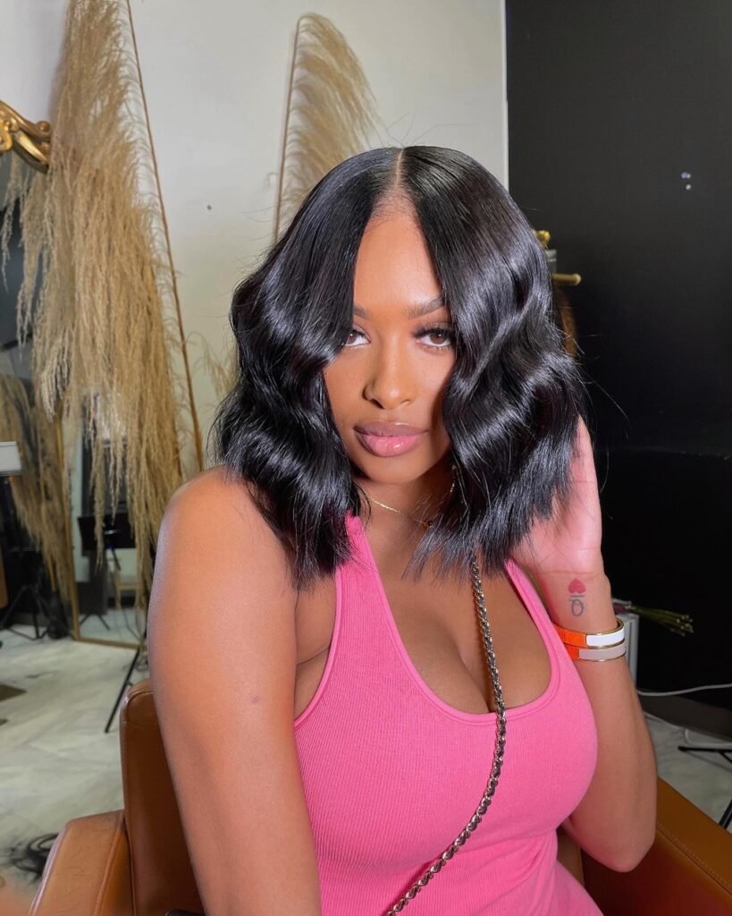 Add a touch of romance to your bob with soft waves. This wavy middle part style creates effortless beauty that feels both modern and feminine. Ideal for both everyday wear and special occasions.
