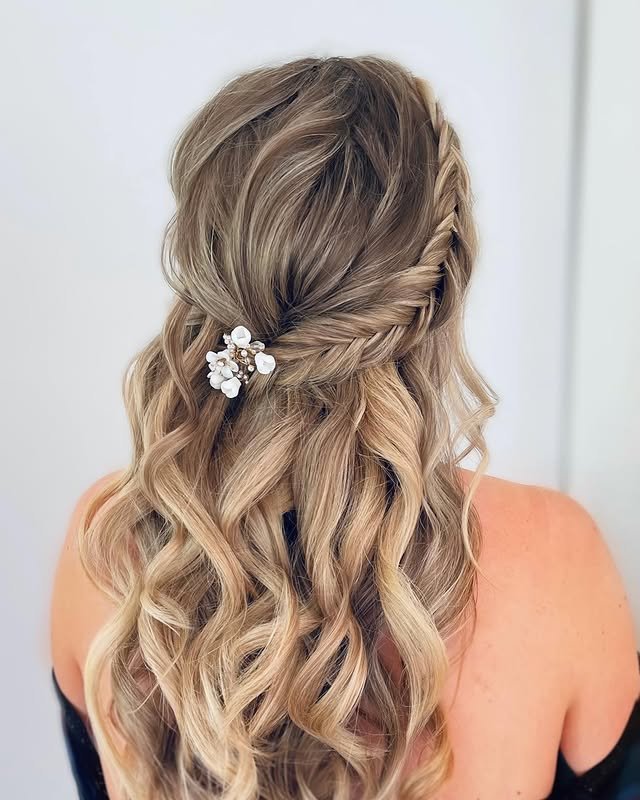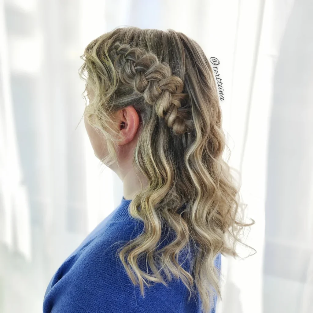 Combine side braids with loose curls for a hairstyle that’s glamorous and chic. This combo adds texture, bounce, and a touch of sophistication. Perfect for weddings, dates, or special events.