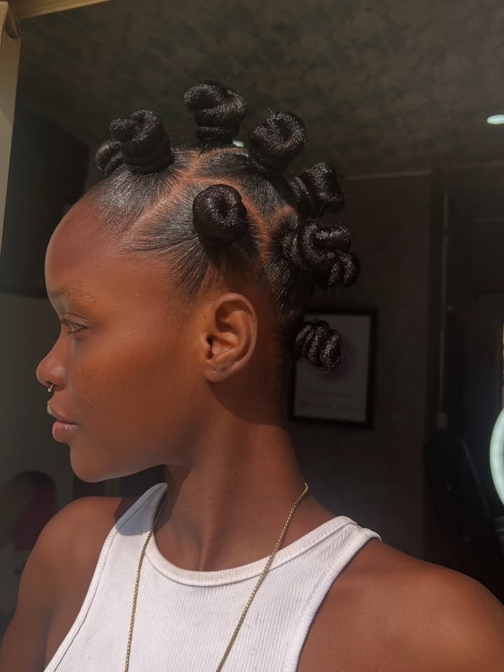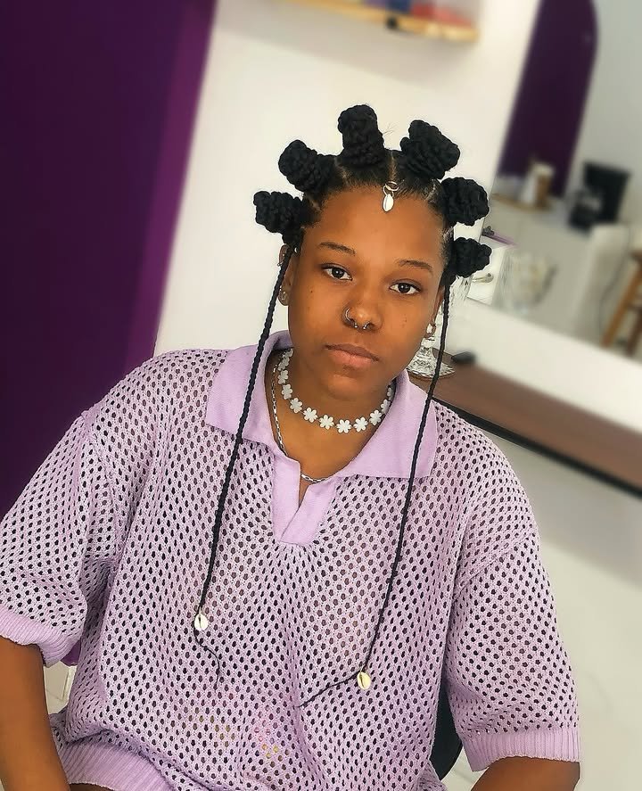 Simple yet sophisticated, these Bantu knot styles exude elegance. Ideal for formal events or photo shoots, they show that tradition can be incredibly chic.