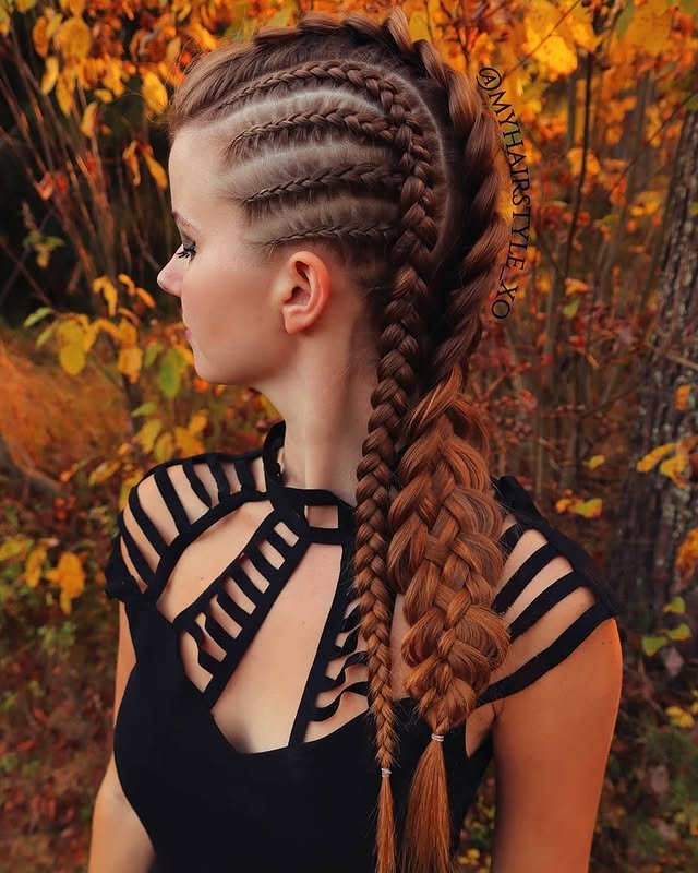Show off your bold side with a Dutch braid mohawk. The braid down the center adds edge and volume. A daring hairstyle that makes a strong fashion statement.