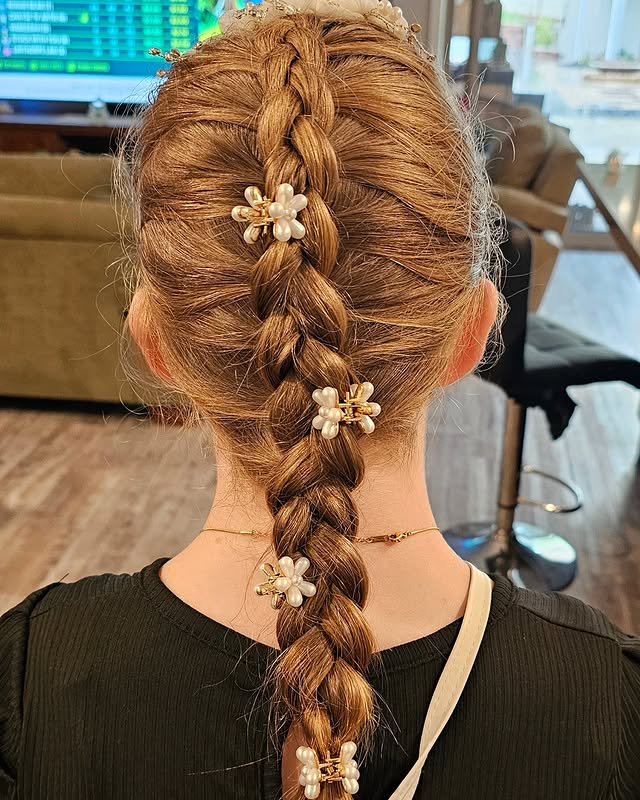 Elevate your Dutch braid with beads, clips, or ribbons. Accessories add a fun twist and make the style pop. Ideal for parties, weddings, or festive occasions.