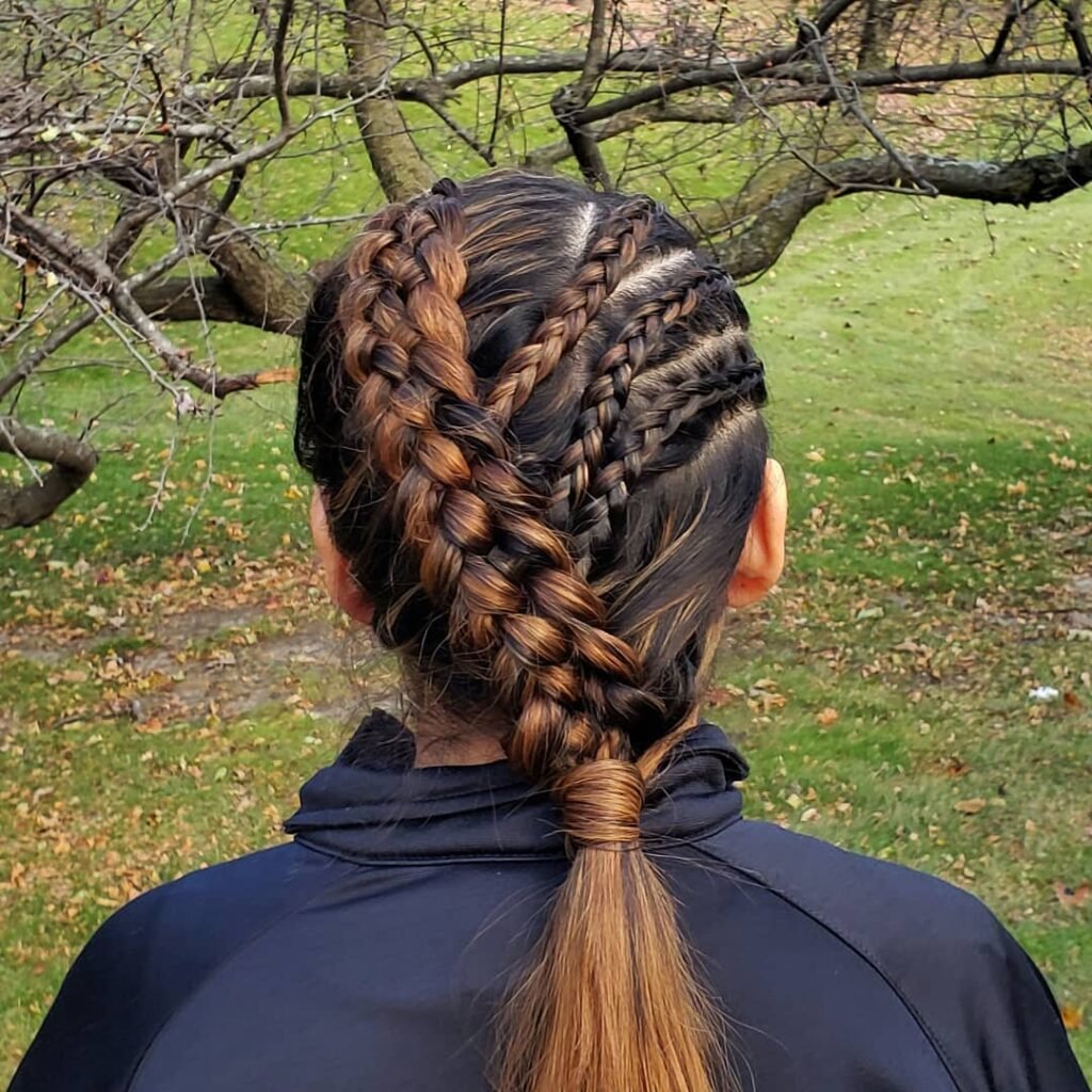 Double Dutch braids are a trendy and practical choice. They keep hair out of your face while adding a youthful, playful vibe. Great for workouts, school, or casual outings.