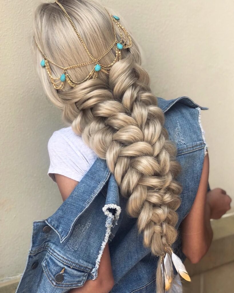 Turn your braid into a regal crown with this stunning style. Wrapping the braid around your head creates an elegant, boho-inspired look. Perfect for weddings or festivals.