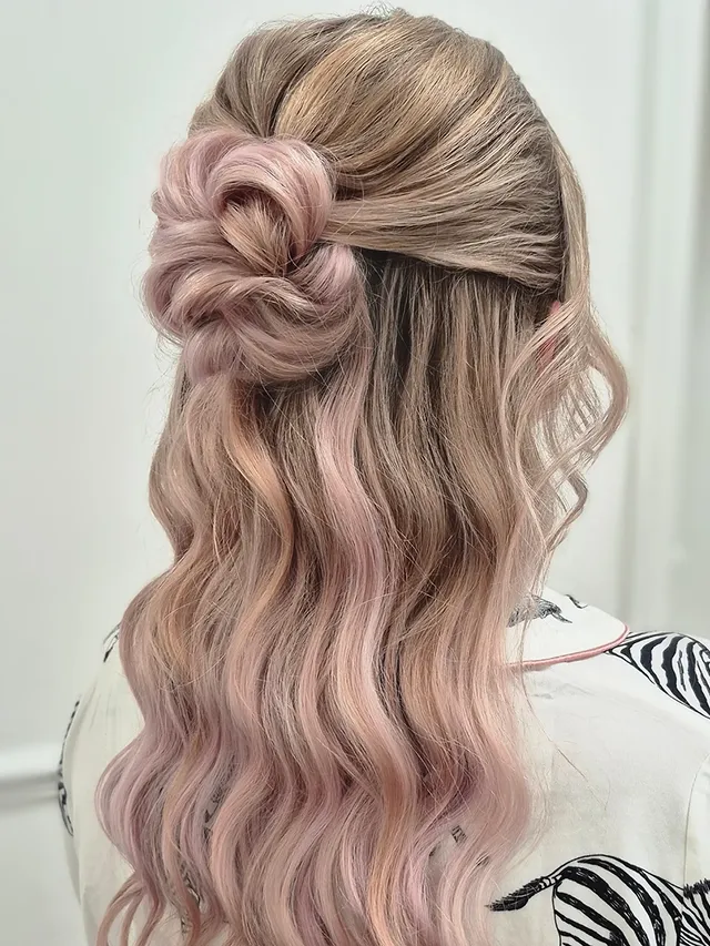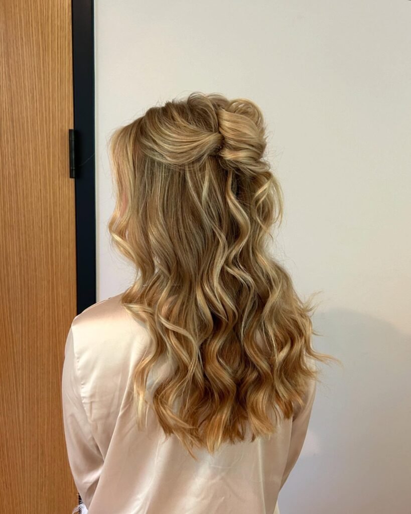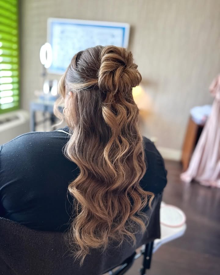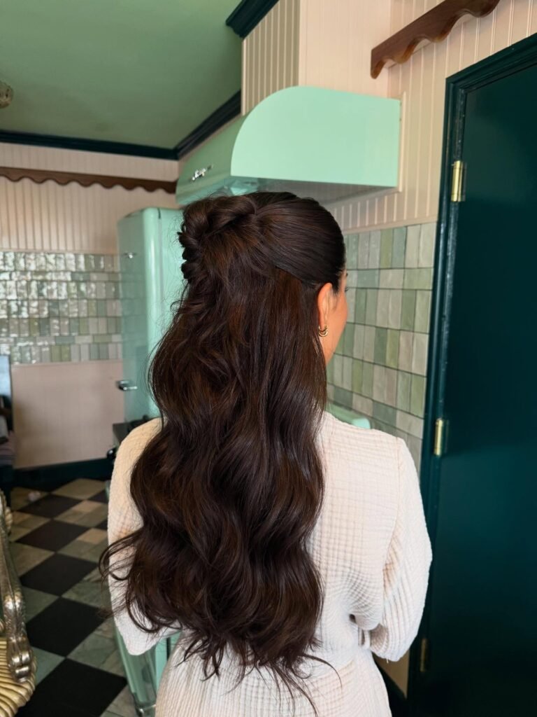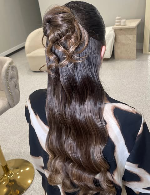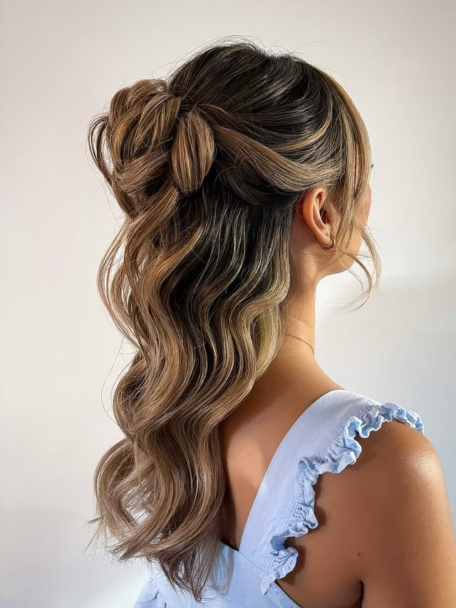 Looking for something soft and sophisticated? Try a half up half down bun for weddings, parties, or date nights. It’s a timeless style that highlights your beauty with ease.