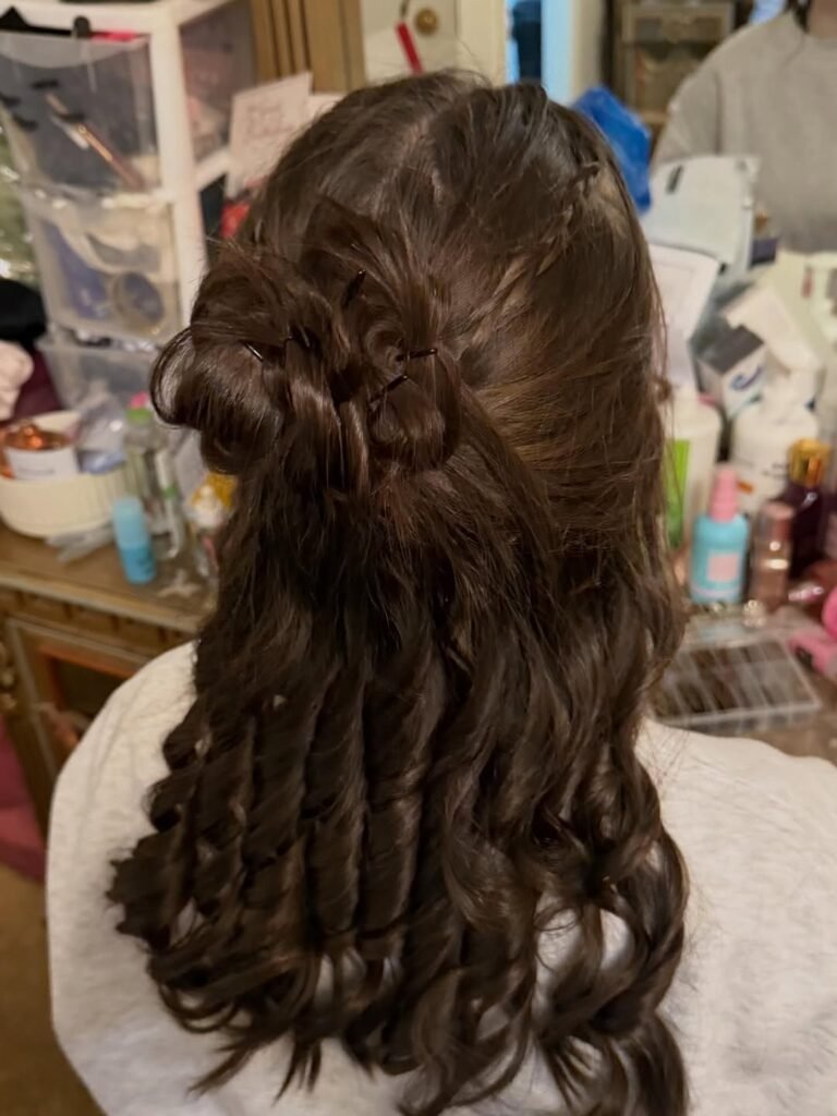 Whether you’ve got curly, straight, or wavy hair, the half up half down bun works for everyone. It’s playful yet polished — a go-to look that never fails. Great for school, work, or weekend fun.