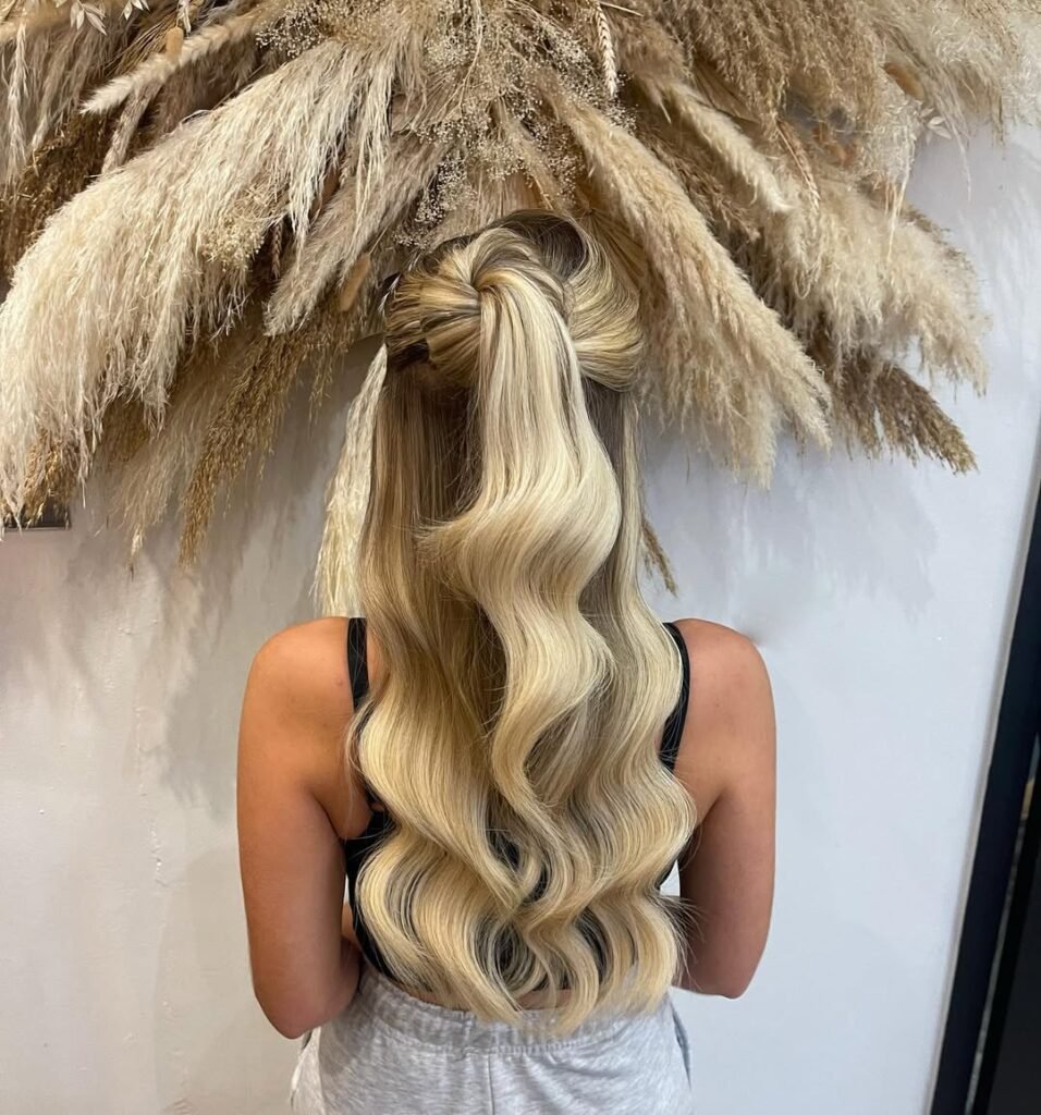 Embrace the perfectly imperfect look with these messy half up half down buns. Loose strands, soft waves, and a relaxed finish create an effortlessly chic style. Perfect for your everyday glow-up.