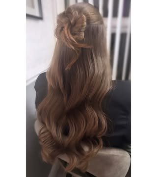 Add a touch of romance to your look with these half up half down buns. The gentle texture and volume create a graceful, feminine silhouette. Perfect for date nights or garden weddings.