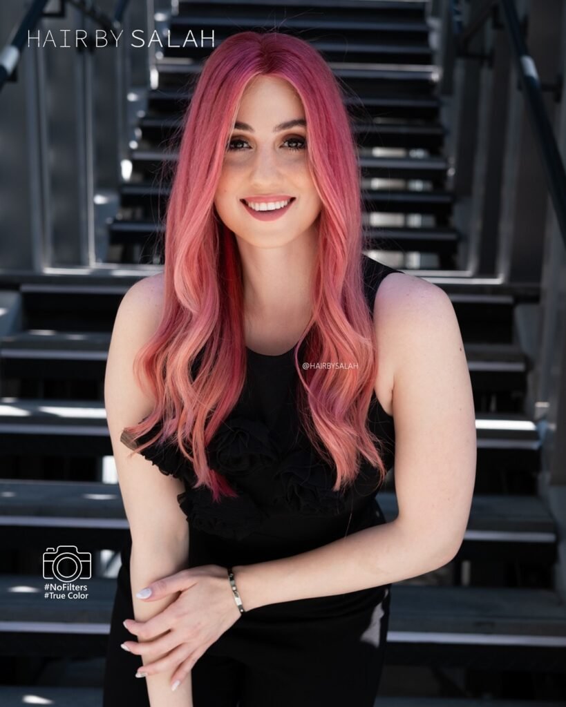 Create a fairy-tale vibe with flowing pink tresses that feel magical and romantic.