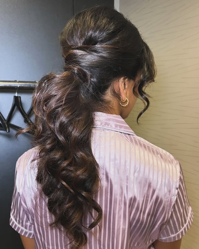 Adding twists to your ponytail base gives it a soft, romantic touch. It’s easy to achieve and looks elegant on all hair lengths. Perfect for bridesmaids, date nights, or even casual outings.