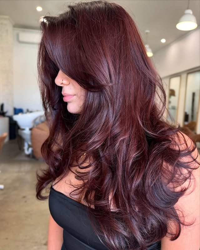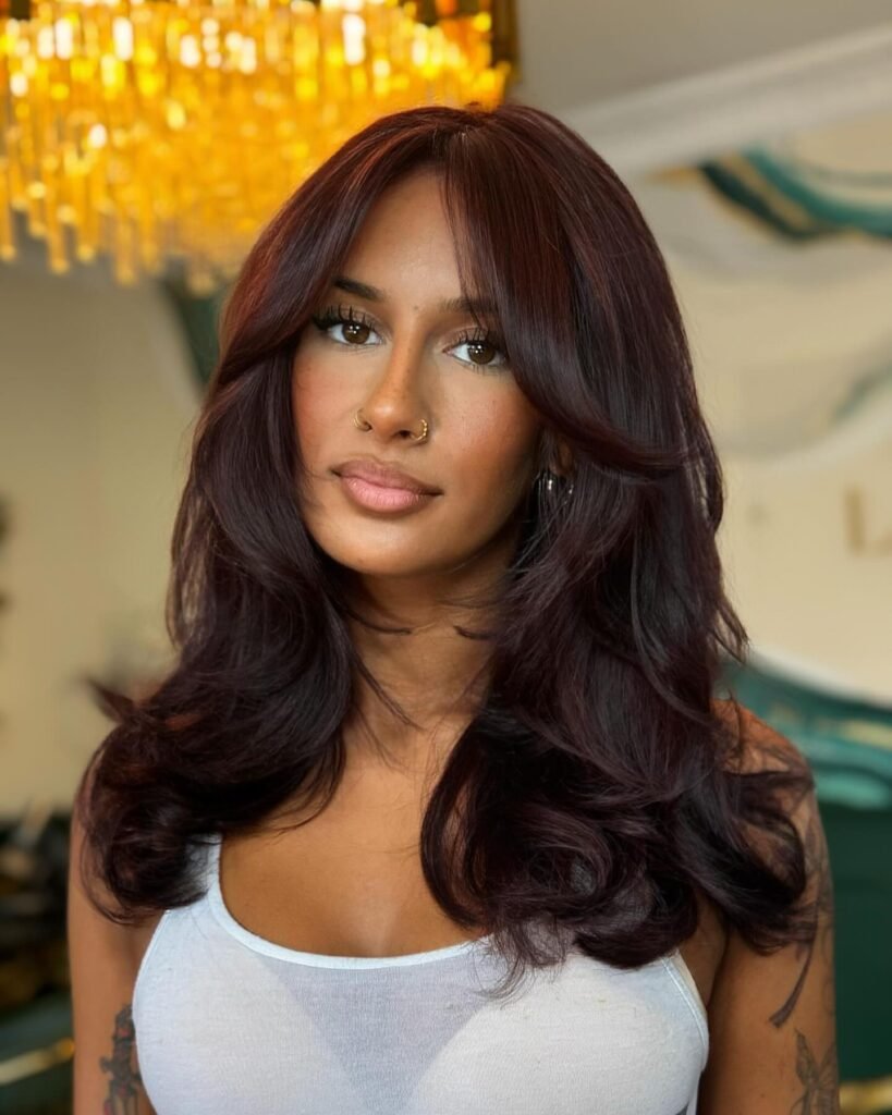 Cherry cola hair has a rich, glossy shine that feels glamorous. It’s perfect for anyone wanting a polished, red-carpet vibe. These luxurious ideas will inspire your next salon visit.