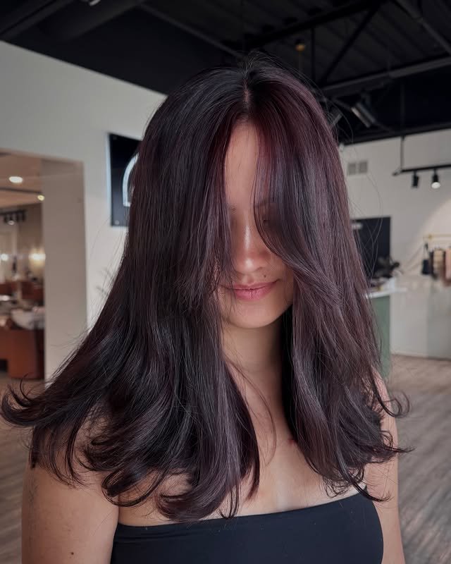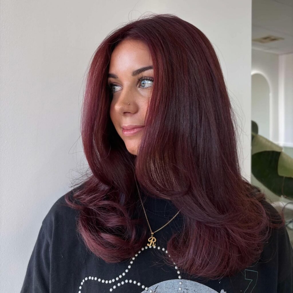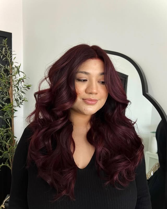 Dark cherry coke hair radiates sophistication and shine. It’s perfect for achieving a glamorous, red-carpet-ready vibe. These luxe styles are ideal for anyone who loves polished beauty.